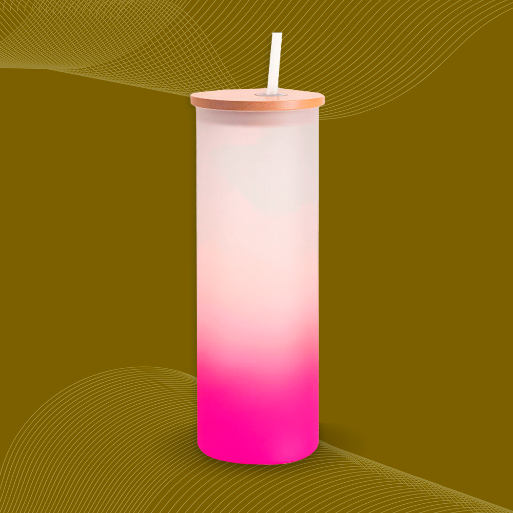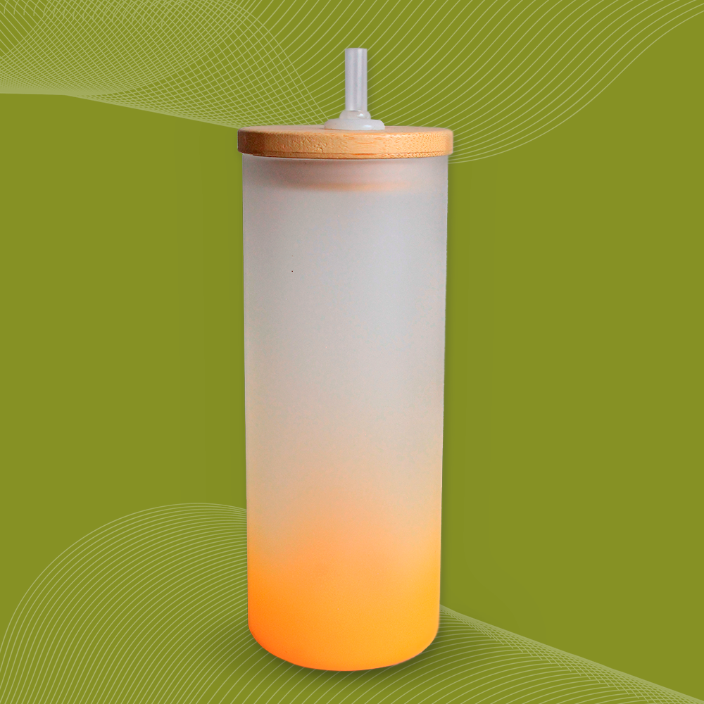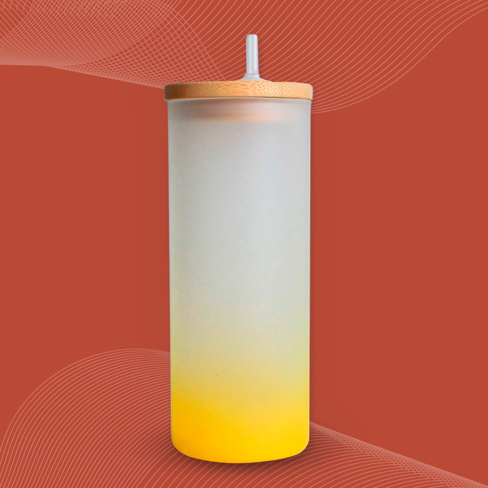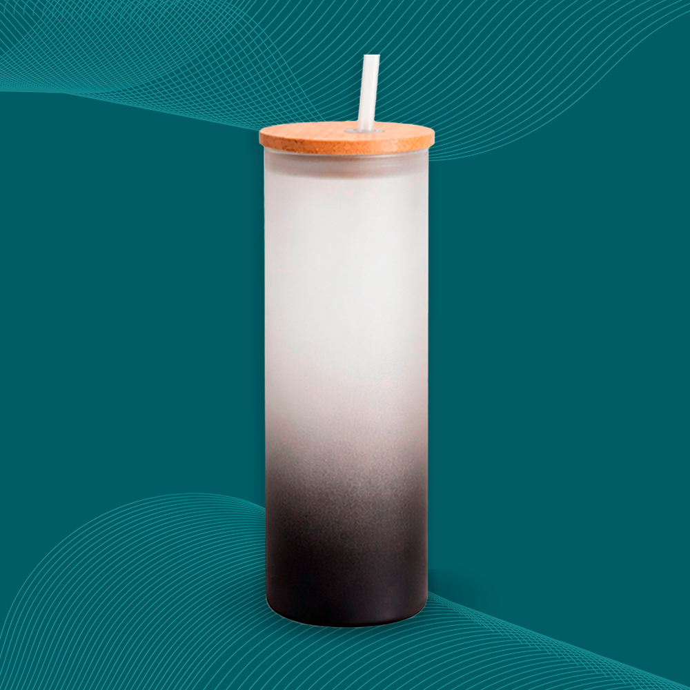 Vaso esmerilado grande con tapa de madera para sublimación